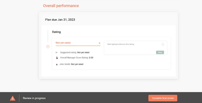 The Final Review is the culmination of all of the work that you and your team have put in over the last quarter or fiscal year, depending on your review cadence. This is where you get to summarise the feedback that you’ve provided over the last 12 months or so where Ideally you’ve seen your reports flourish. Or possibly where you highlight behaviors or actions that your team members will need to take to improve themselves for the coming year. Either way, this is where you get to make that impact.