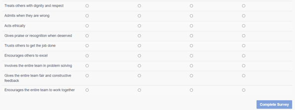 Note: The Survey questions for the Leadership survey cannot be amended and are hard coded.