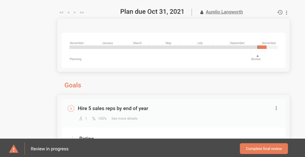 Generally, the review period starts 28 days before the plan's final review due date. At that time you will receive an email notification reminding you to complete the review for your reviewee. Simply click on the link in the email to be brought to the review page to complete the review.