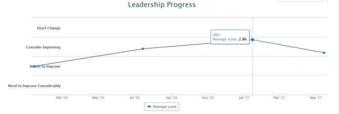 The Leadership Progress feature presents a line chart that helps assess whether a leader is performing well or needs significant improvement. This visual tool allows leaders to track progress over time, providing insights into overall performance and individual skill areas.